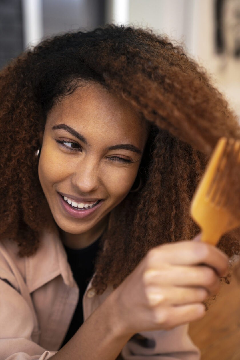 Limitez l’utilisation de produits chimiques agressifs : Les colorations capillaires, les permanentes et les défrisages chimiques peuvent affaiblir et endommager les cheveux. Essayez de limiter l’utilisation de ces produits ou optez pour des alternatives plus douces et naturelles.